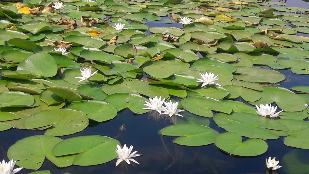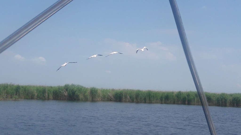 Pelicanii ne-au lăsat să îi admirăm, la fel și cormoranii și egretele. În acea vreme era plin de libelule albastre, foarte jucăușe. Erau înfloriți nuferii albi, roz și galbeni. Nuferii înfloresc din iunie și țin până în septembrie, pot rezista până în octombrie dacă este cald.