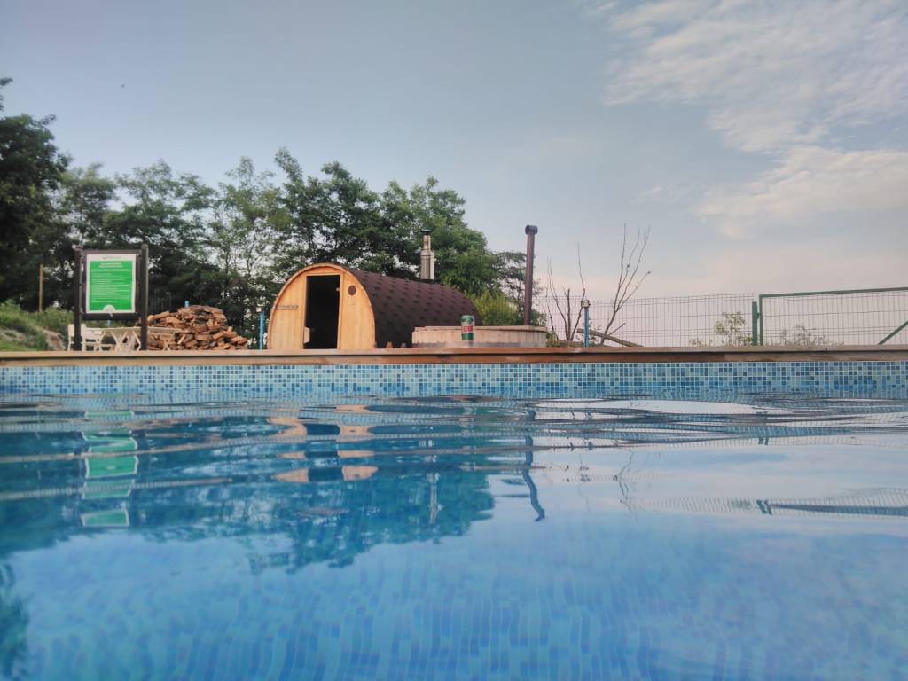Locaţia este una deosebită, are un design modern îmbinat cu elemente tradiţionale. În curte, lângă piscină, este sala de mese, o construcţie modernă cu mobilier din lemn şi separat au locuri pentru fumători.