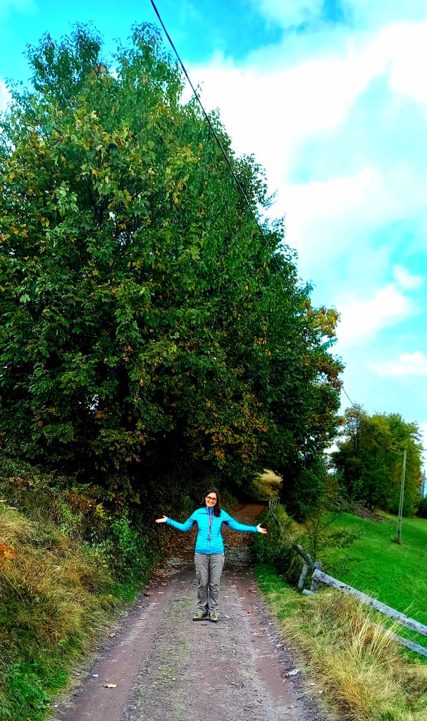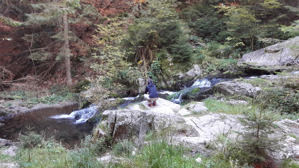 De la ei din curte, urmează poteca superbă de pe dealuri până la cascadă. Traseul este minunat, m-am simțit ca în țara lui Heidi 😊. Sunt marcaje din loc în loc, bine întreținute. Este un traseu ușor de străbătut, în aproximativ 20 min. ești la cascadă. Cascada în sine nu e spectaculoasă dar drumul până la ea este parcă desprins din povești.