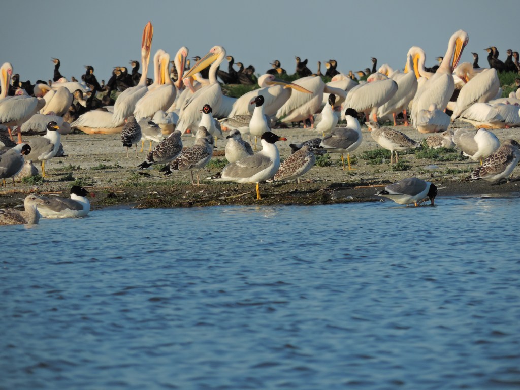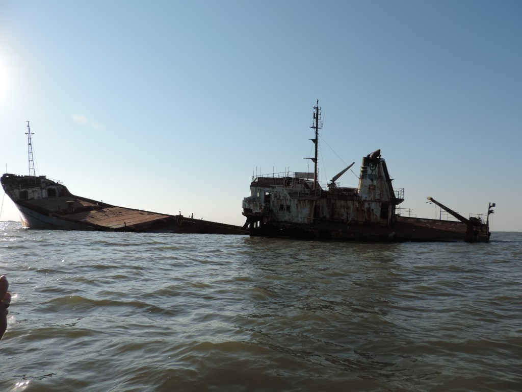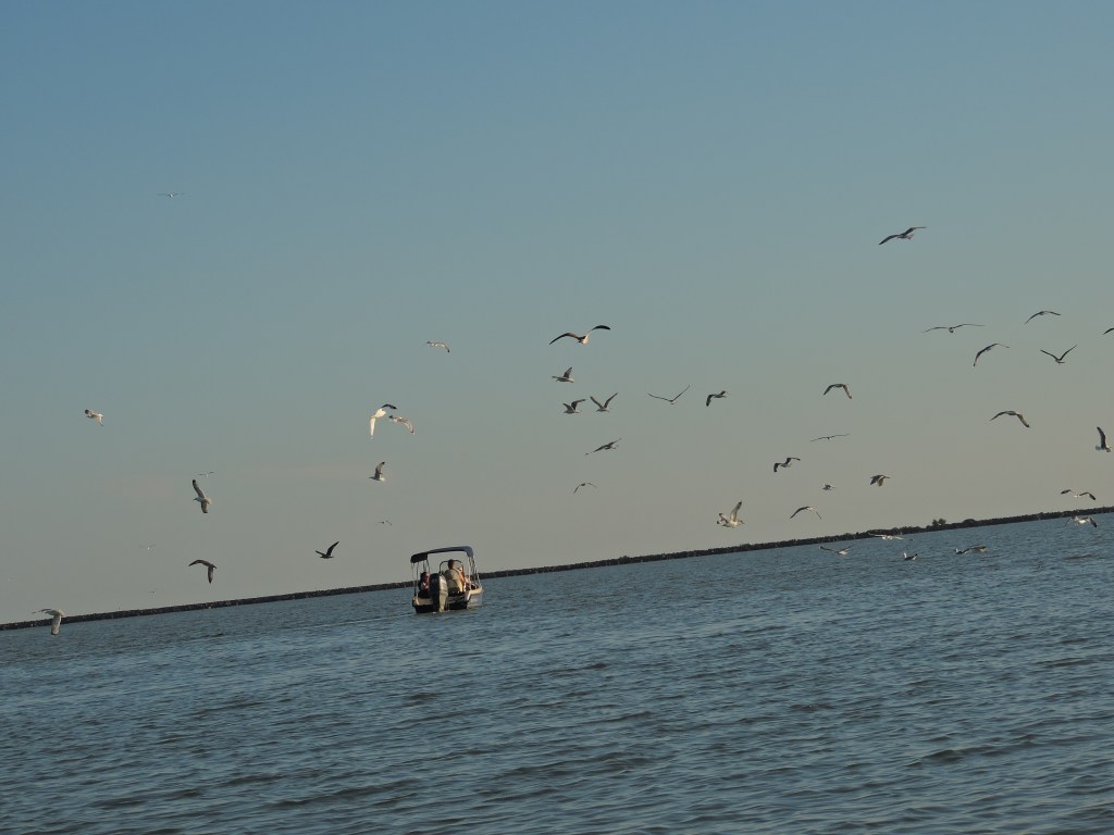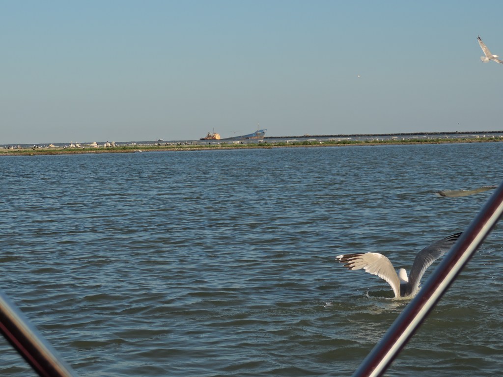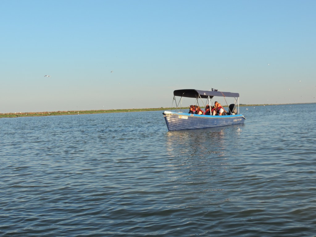 La ora 18, ne-am dat întâlnire în portul Sulina (la Restaurantul Marea Neagră) cu Marius, care ne-a plasat la cel mai amuzant barcagiu din câți am întâlnit până acum. Acesta ne-a plimbat agale până la gura de vărsare a Dunării în Marea Neagră și între timp, ne povestea despre ce vedem pe traseu.
