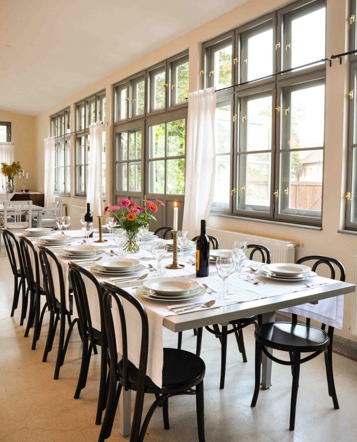 Una dintre case este o veche şcoală evanghelică, în stil Art Nouveau, are patru camere, o bibliotecă şi o zonă de relaxare în salonul din vechea cancelarie (Sursa – site-ul pensiunii care, by the way, este creat cu bun gust și foarte bine pus la punct).