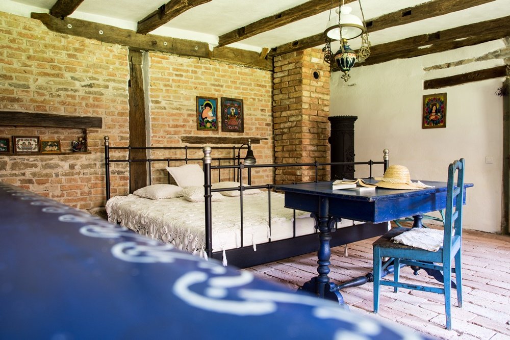 Mobilierul din lemn pictat manual, încăperile răcoroase vara și ambianța foarte plăcută pe timp de iarnă te vor transpune într-o lume de mult timp apusă. Plimbați-vă pe alei, până ce zăriți o casă albastră 😉.