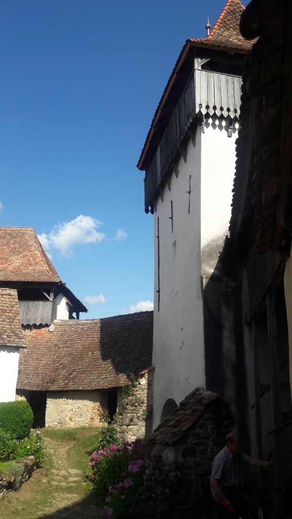Casele sunt tradițional săsești. Pe marginea drumului principal din sat este plin de pomi fructiferi – mai ales peri, și vă pot spune că …până și perele din Viscri sunt foarte bune.😁