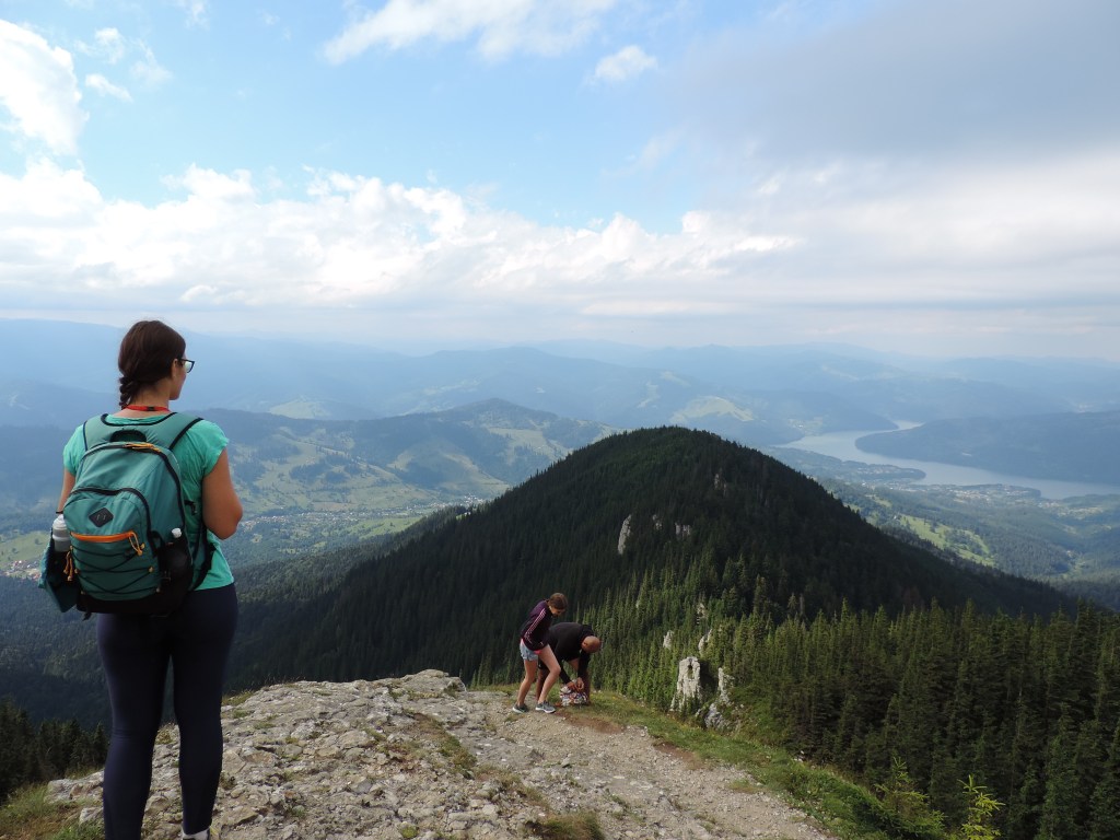 De la Vârful Toaca până la Cabana Dochia este drum lejer de maxim 20 de minute. Soarele începea să se ascundă după nori iar în partea opusă se întrezărea lacul.