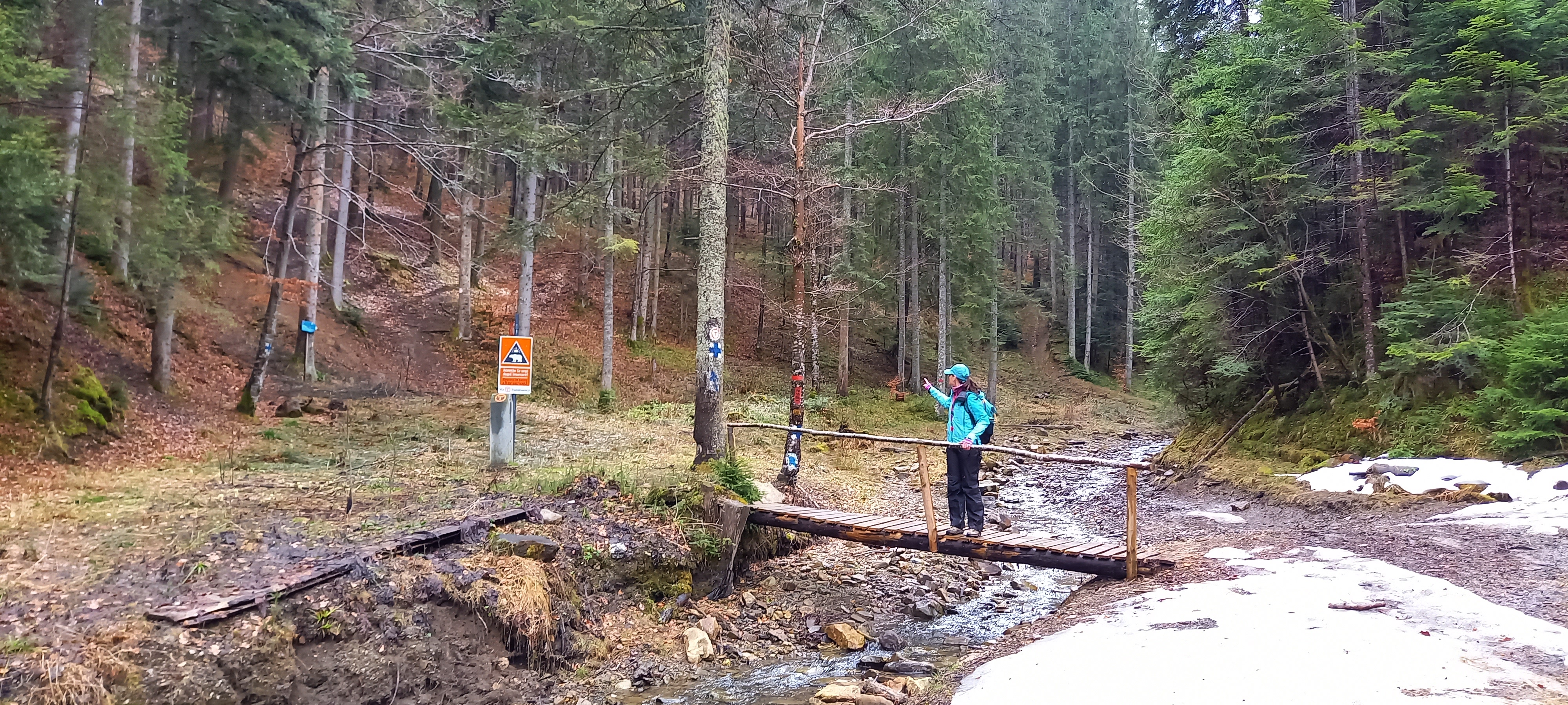 La kilometrul 10, va fi nevoie să treci podețul de lemn pentru că se părăsește drumul forestier și se urcă pieptiş în pădure. După o urcare scurtă, cărările sunt plăcute, este o pădure deasă, cu mai puțină vizibilitate.