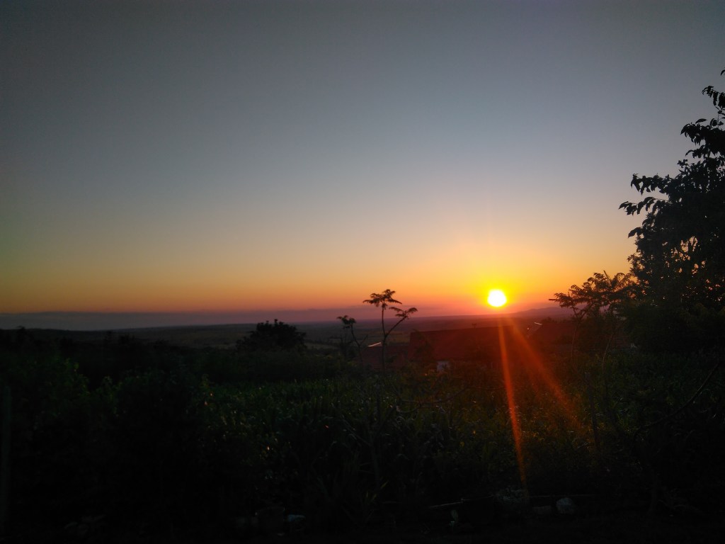 Cea mai apropiată așezare este Potoc. Aici am găsit într-un final o casă de închiriat. Cel mai mult ne-a plăcut amplasarea ei pe deal. Apusul este minunat văzut din curte.