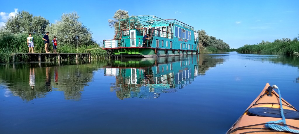 Un mod ecologic de a descoperi Delta este din caiac. După mulți ani în care frica de apa a fost mai puternică am reușit în sfârșit să mă bucur de experiența de a sta pe apă din caiacul asta fain colorat. Cristi a fost cel mai fericit că a reușit până la urmă să se distreze 2 ore cu caiacul pe Dunare, atât de aproape de apă …