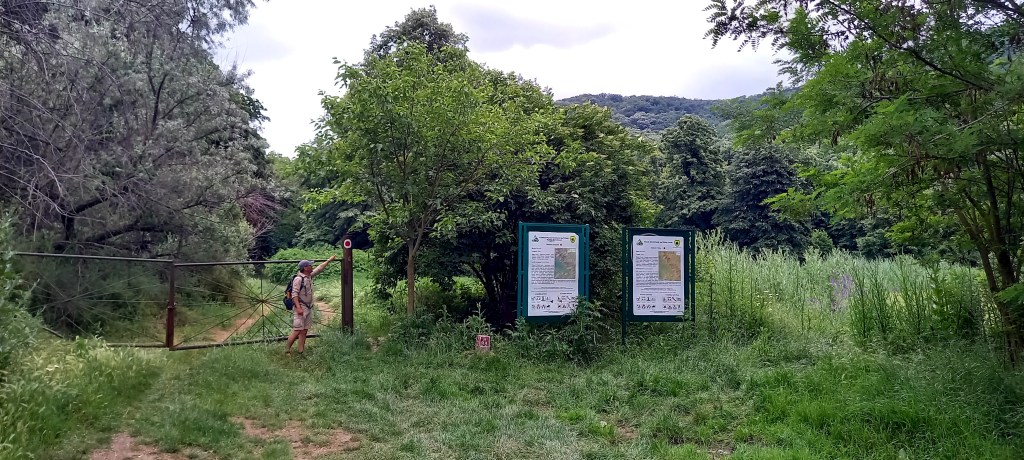 Cum ajungi la barieră? După stejarul solitar mai continui pe cărare vreo 5 minute și ajungi la panoul care indică traseul. Din fața panoului de intrare în traseu dacă privești spre stânga se văd Cheile Chediului (nu e traseu marcat, zona închisă pentru rezervație științifică).