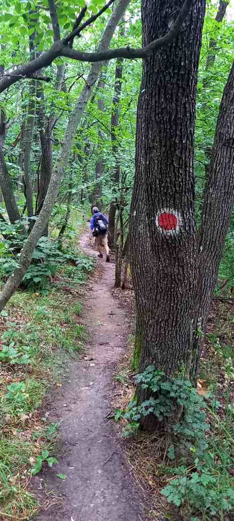 !!!Legat de indicatoare și marcaje, noi am avea câteva sugestii. La intersecții de drumuri și la ieșire din pădure ar fi util să fie mai bine marcat pe unde se continuă. Au fost porțiuni în care lipsea marcajul punct roșu. În pădure nu e problema asta. Mă refer mai ales la ieșirea din pădure când dai nas în nas cu terenurile agricole și nu știi care e poteca corectă 😏. Acolo aș pune tăblițe informative. Noi ne-am orientat pe Google Maps pentru a ajunge înapoi la mașină.