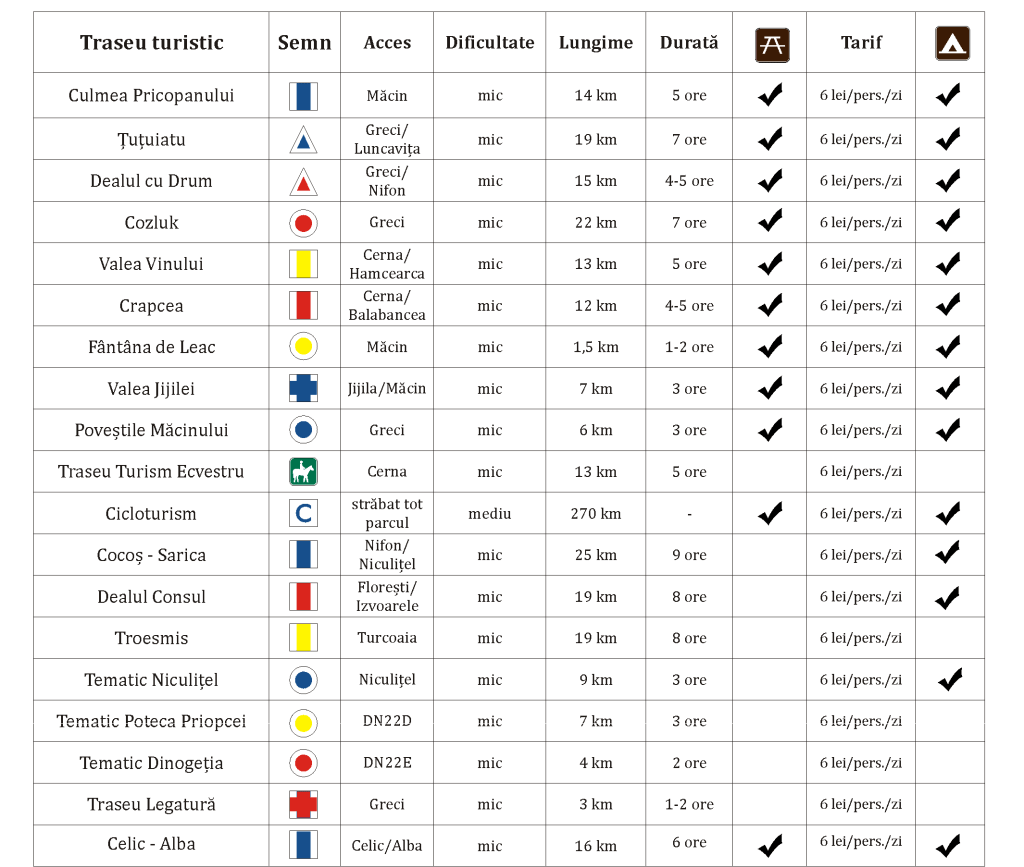 Taxa de intrare în aria protejată Parcul National este 6 lei/persoană și se achită la Centrul de informare al Parcului.