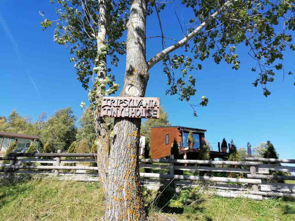 Cabana magică din mijlocul naturii a fost deschisă în 2021 și se numește TripSylvania Tiny House. Este ideală pentru relaxare, să admiri munții și cerul instelat în liniște și să faci baie în ciubăr. Căsuța deși este mică, este ideală pentru 2 persoane. Recomandare, dacă vrei un weekend aici: să rezervați cu câteva luni înainte și să fi disponibil să stai ambele nopți, cabana nu se închiriază doar pentru o noapte.