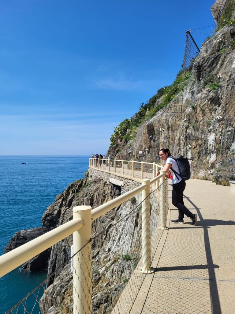 Traseul de trekking „Blue path” în Cinque Terre este o opțiune de a vedea la pas toate cele 5 sate superbe de coasta. “Via dell` Amore -The way of love” este primul pasaj cu acces între Riomaggiore și Manarola si care, din păcate, este închis până în mai 2024. Update: Atunci când am revenit în 2025, am fost norocoase să găsim această potecă deschisă publicului după 12 ani.
