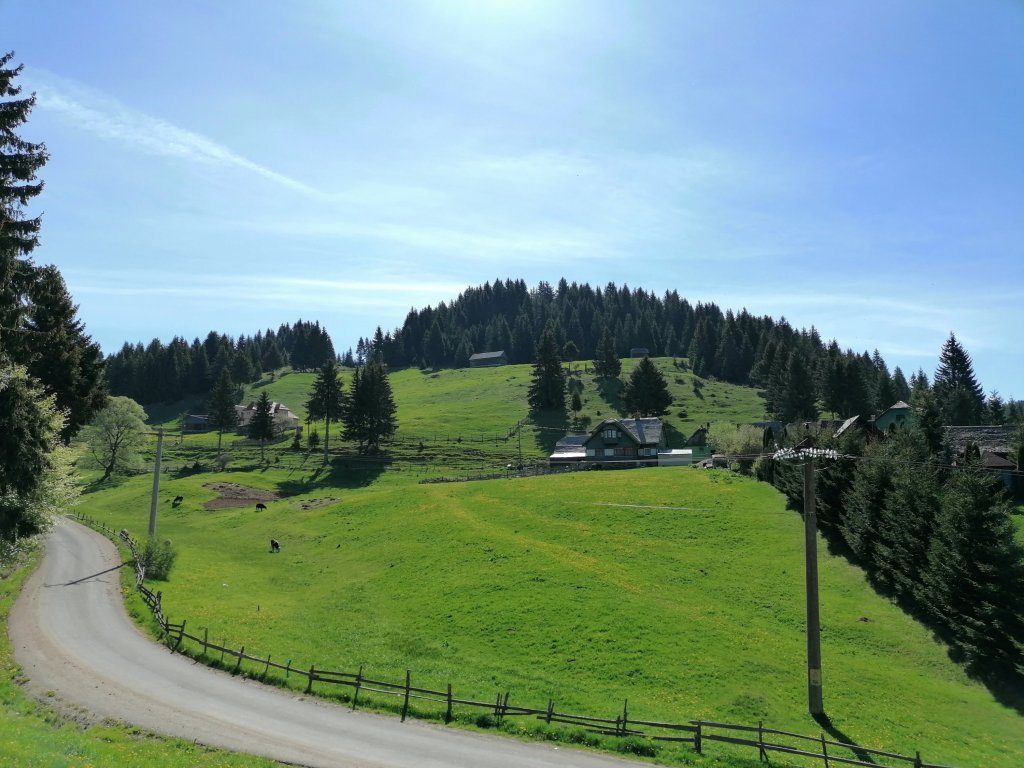 Drumul de asfalt urcă și coboară vălurit și se întâlnesc la tot pasul, într-o armonie plăcută, unități de cazare, case tradiționale și fânețe întreținute.