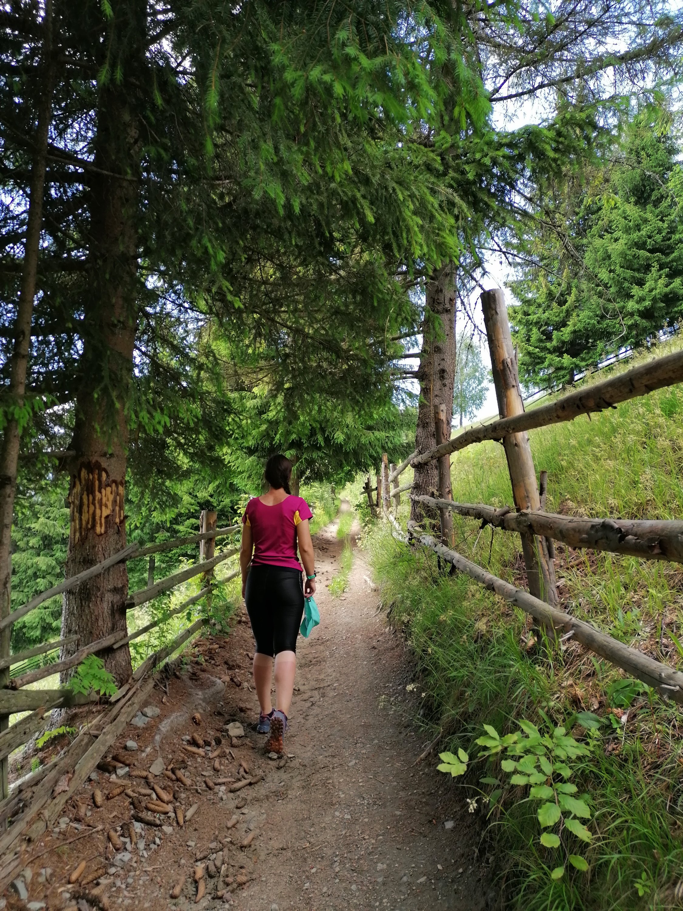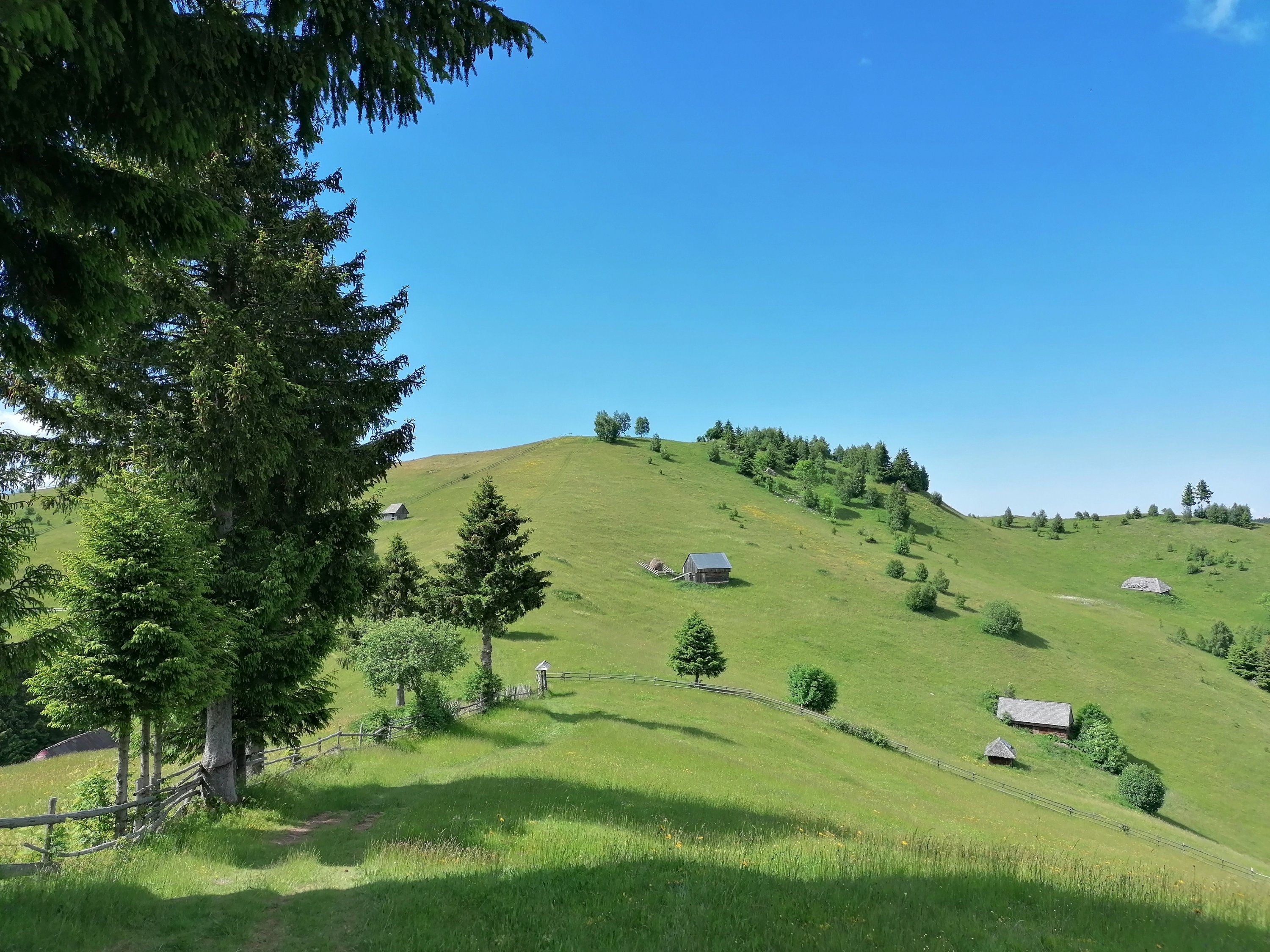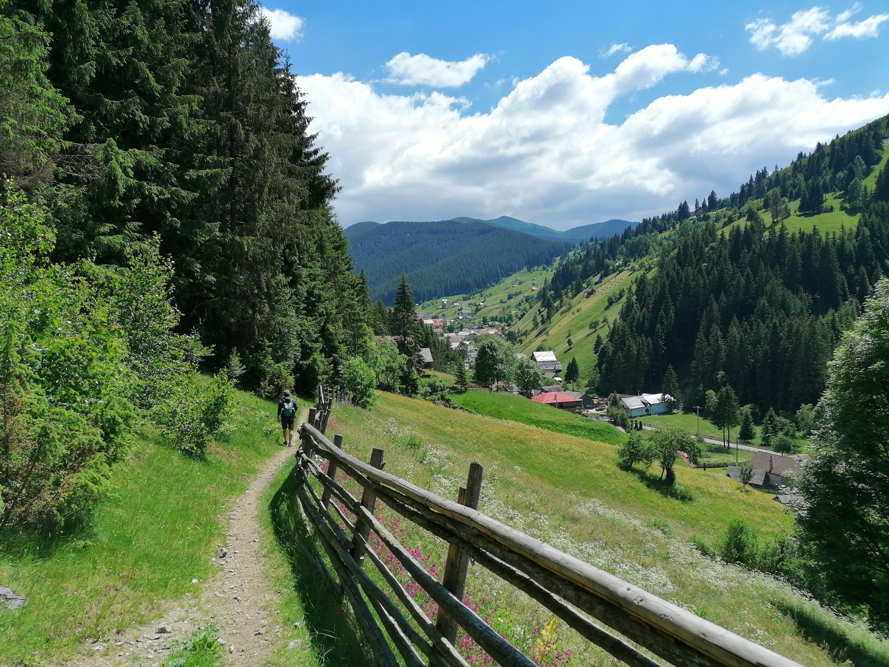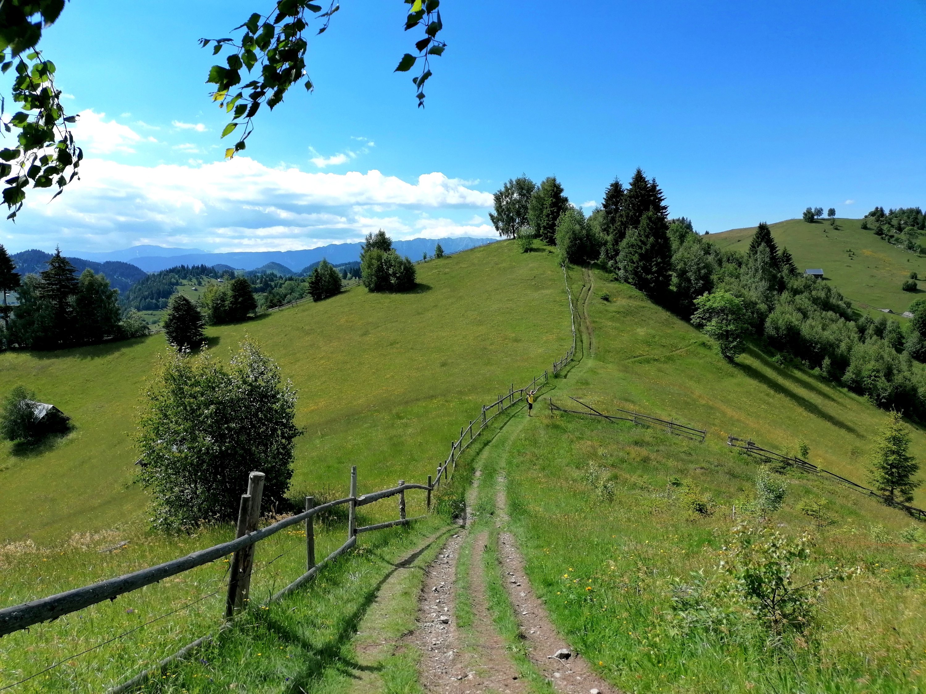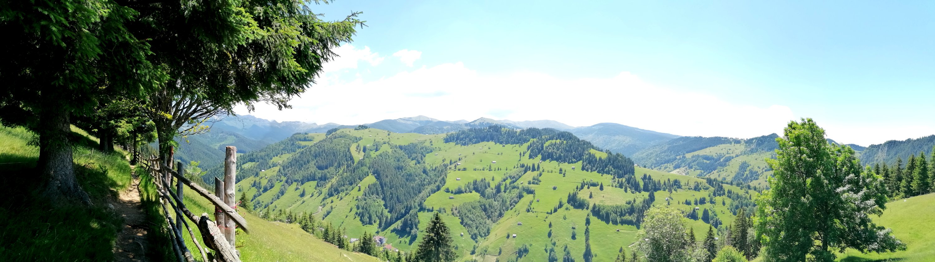 Este un traseu spectaculos, cu deschideri largi spre sat, spre Bucegi, spre dealuri cu căpițe de fân, poteci marginite de garduri de lemn ca în povești, floricele de câmp vesel colorate, fără câini și deloc aglomerat de călători.
