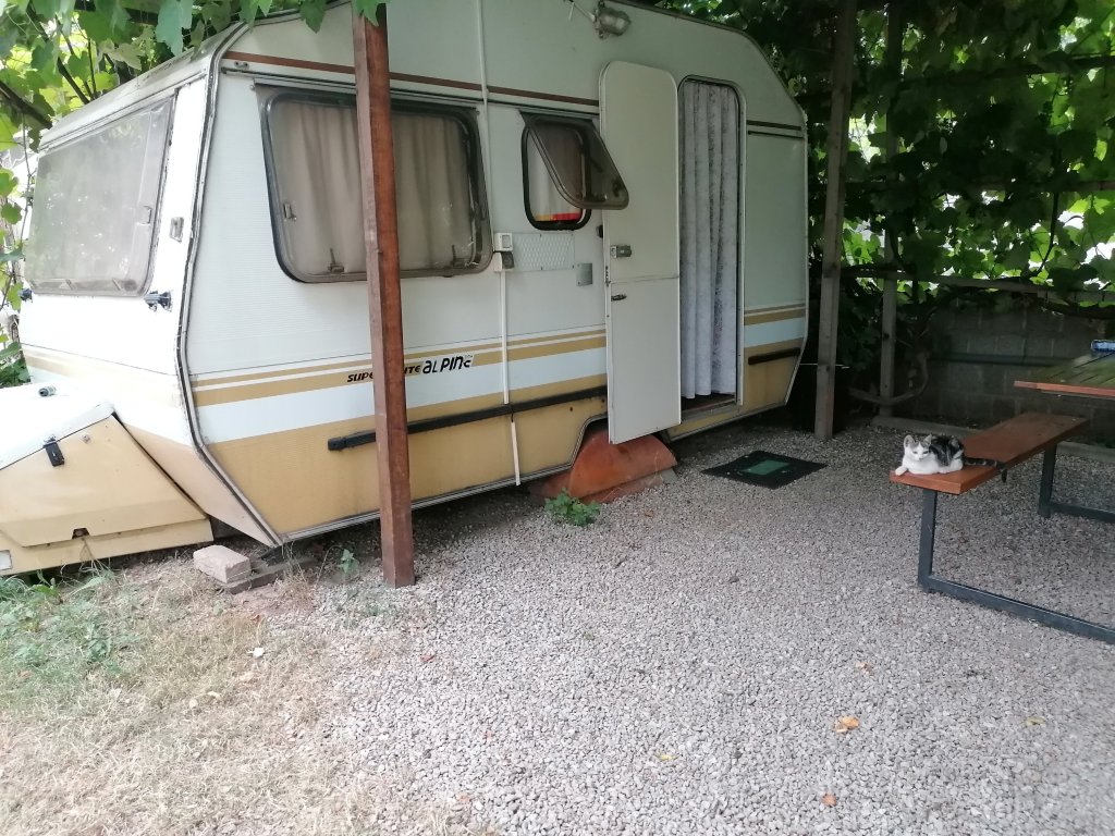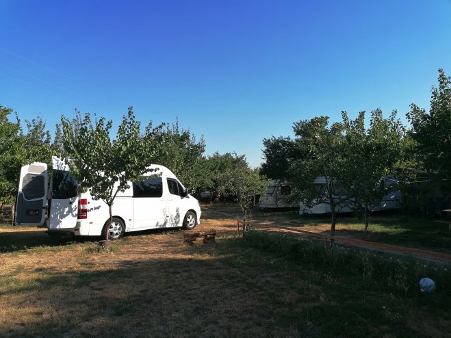 Ce ne-a atras pe noi cel mai mult la acest loc? Livada de pomi fructiferi în care este amplasat campingul, o oază de răcoare în zilele caniculare, și faptul că am putut închiria o rulotă în care să înnoptăm. Ne-a plăcut atât de mult încât am mai rămas o noapte față de planul inițial.