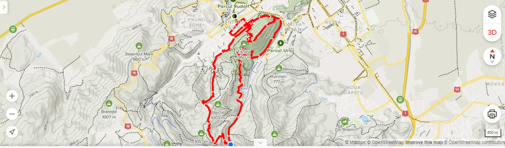 Ajunși în vârf din nou ☺️🙈 am continuat în coborâre pe drumul forestier până la Bariera din Răcădău și apoi pe promenada ce înconjoară muntele Tâmpa până când se ajunge, în Aleea Tiberiu Brediceanu. De aici înspre Piața Sfatului până la linia de sosire mai sunt 2 km.