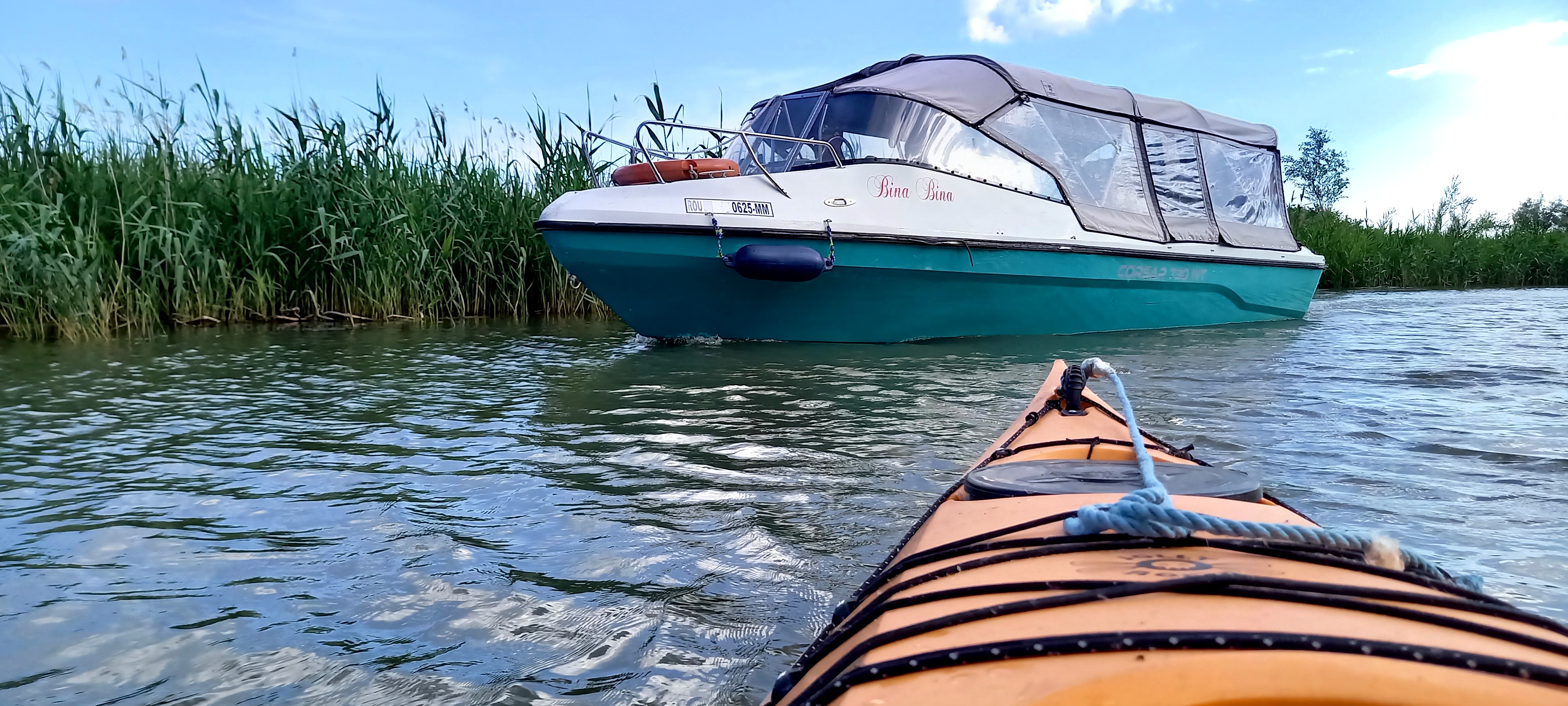 Traversarea canalului Sulina din caiac, printre vapoare și bărci de mare viteză, poate adăuga un strop de adrenalină. 😉 Dacă ştii dansul pe valuri nu vei avea probleme. Padela a vrut la Cristi, eu nu m-am împotrivit, chiar m-am bucurat de plimbarea în acest ecosistem unic!