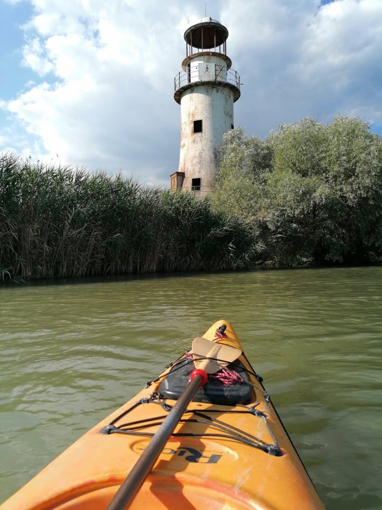 Știam că ne vom plimba cu caiacele pe canale înguste alături de alte ambarcațiuni dar să trecem canalul Sulina era prea departe în gandurile noastre. Încet, ne-am făcut loc printre bărci de mare viteză și vapoare, am ajuns în Golful Musura si am respirat uşurată lângă vechiul far al Sulinei. A fost o experiență foarte plăcută, pentru Cristi mai ales. Să fiu atât de aproape de vapoare, dintr-un caiac, a fost senzație :-).