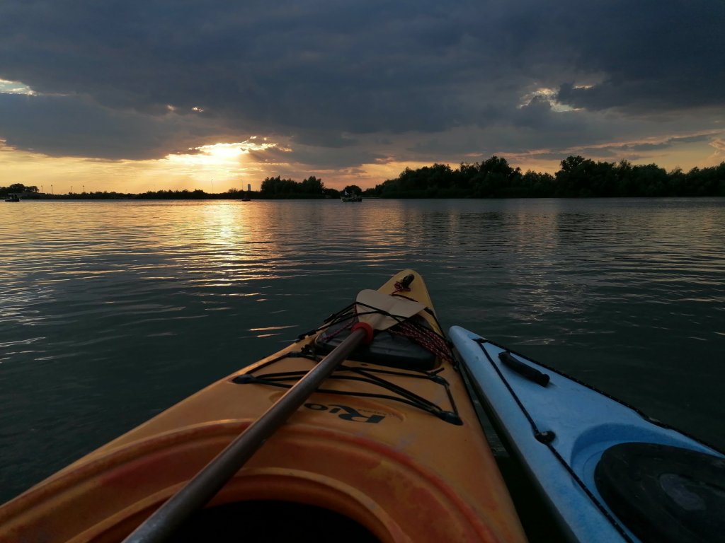 O dorință mai veche a fost aceea de a vâsli pe Dunăre, în Golful Musura din Sulina, și de a admira apusul din caiac. 🛶