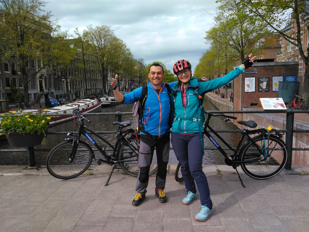 Am plecat după biciclete în centrul Amsterdamului unde știam că vom găsi bițe potrivite pentru drumuri lungi. Aveam de pedalat 4 zile. Firma de închiriat ne-a arătat cum să le blocăm și pentru orice eventualitate, ne spun că ne dau și un kit pentru pană…de parcă „era scris în cărți” ceva…🤔