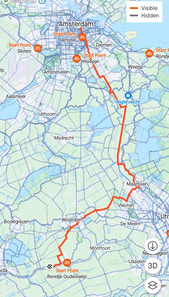 Amsterdam – Abcoude – Lacul Vinkeveense – am mers paralel cu Amsterdam Rejnkanal- Breukelen – Marssen – ocolirea Utrecht – Oudewater, cu oprire în micul Hekendorp.