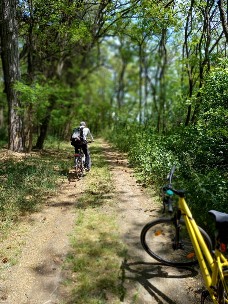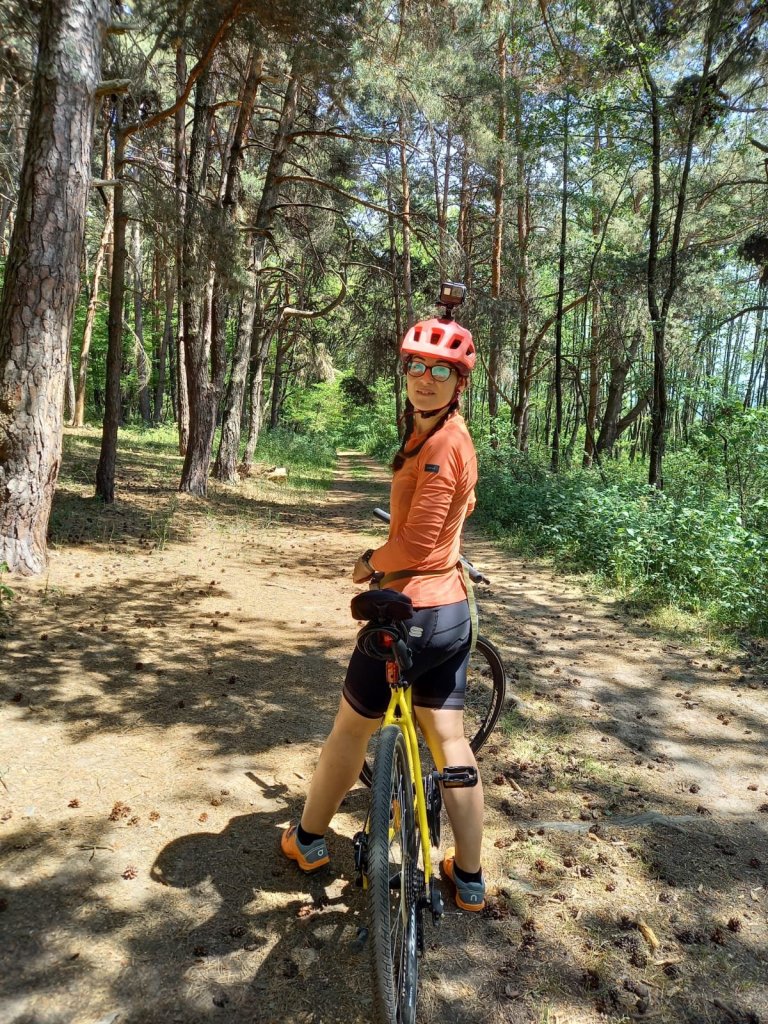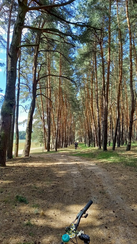 Nu este un drum forestier, ci o potecă verde prin pădure, o cărare ca din poveşti, plină cu conuri de pini, într-o rezervație naturală! Chiar e fain de biciclete aici🧡!