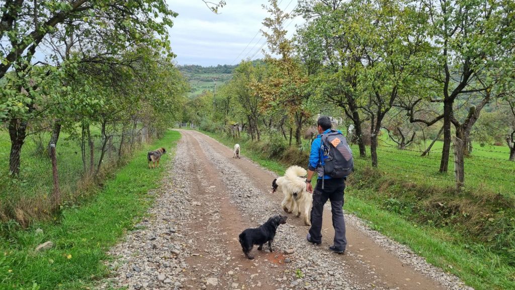 A fost o plăcere să îi avem aproape ca ne-am atașat repede unii de alții dar a fost pe alocuri și stresant. Cristi a avut ocupatie să ne apere, când pe mine când pe câinii însoțitori.😊 Așa, toți agale, am reușit să parcurgem 16 km de mers pe jos prin sat, într-o singură zi.