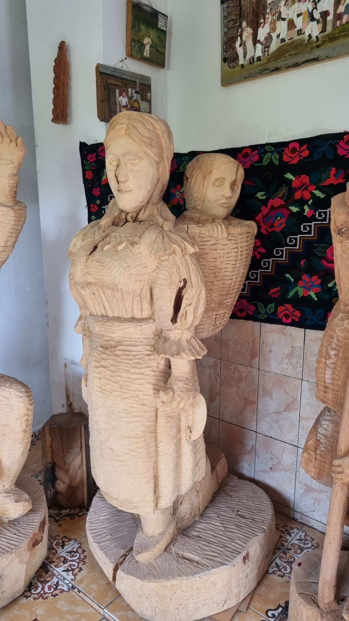 Casa sculptorului Ioan Petric – Loc de vizitat în Breb, atelier și expoziție de lucrări în lemn, sculptură tradițională. Noi l-am prins cu treabă, era TVR 1 în vizită, pregateau un interviu, dar cu toate acestea ne-au primit.